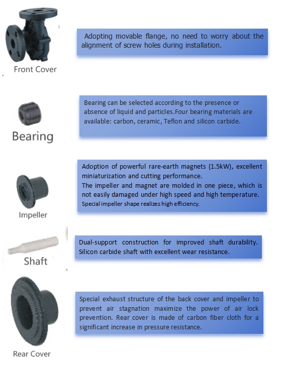| Impeller | (GFR)PP+magnetic | CFR ETFF+magnetic |